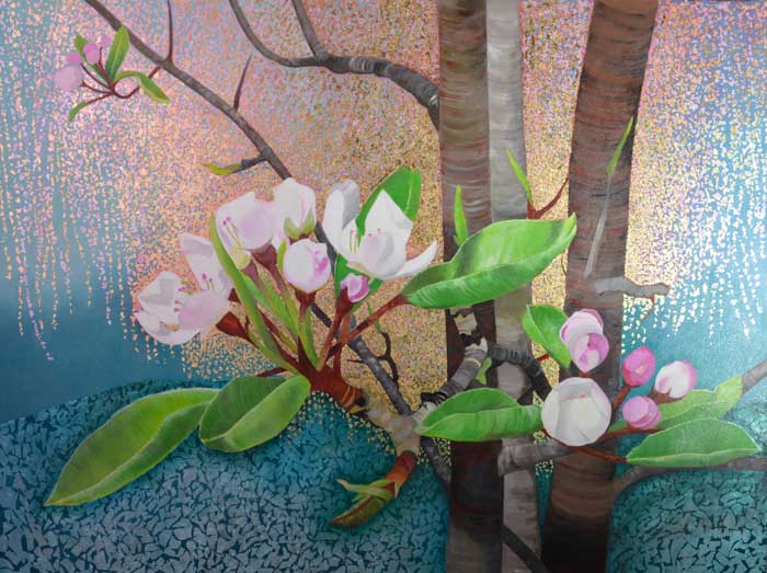 Blooming Pear Tree 36" x 48" oil and metal leaf on canvas $4,000 |