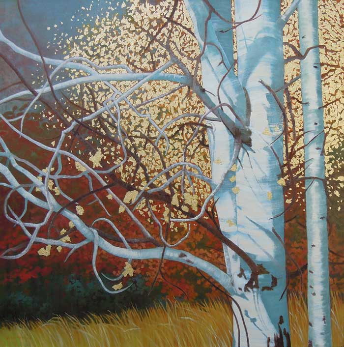 Shimmering Aspens 24" x 48" oil and metal leaf on canvas SOLD |