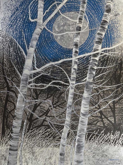 “Lunar Energy” 48” x 36” oil and metal leaf on canvas $3,900 |