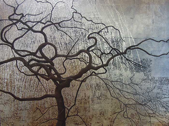 “Winter Tree” 36” x 48” oil and metal leaf on canvas SOLD |